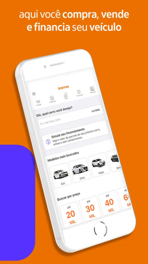 venha aproveitar o nosso app para encontrar diversas ofertas de carros e conquistar o seu! São milhares de opções para comprar carros novos, carros seminovos e carros usados.