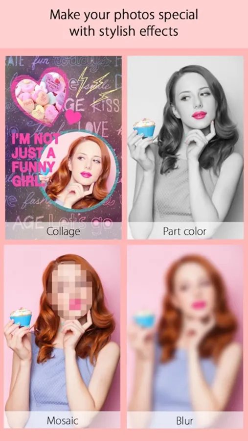 ・ It features a variety of effects for chic photo processing such as filters/ collage/ partial coloring/ mosaic etc.