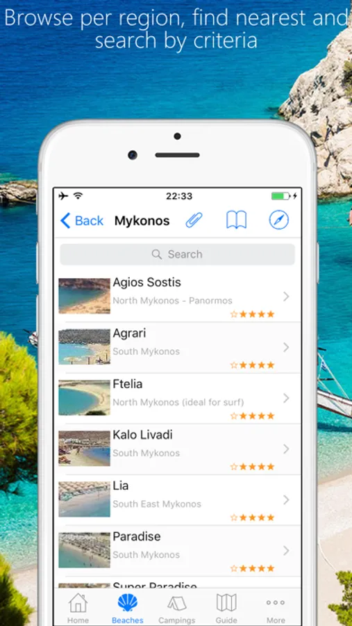 * Download on your device for offline use (without internet connection), the beaches and camping for a region or for entire Greece.