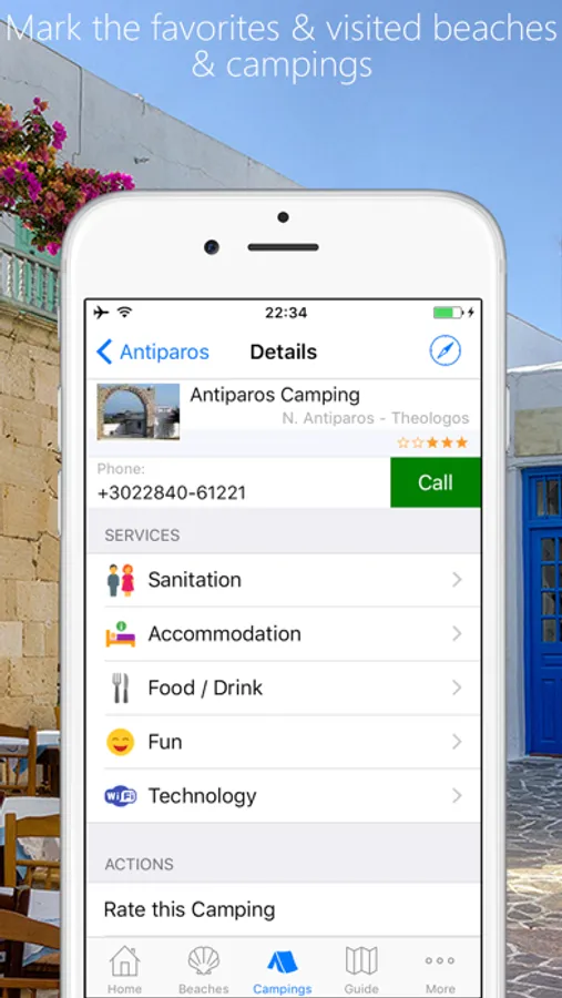 Greek Beach, is a fairly accurate guide for the beaches and camping in Greece. Receiving data is done via Internet (for online use) or download data locally (for offline use). Data are continuously updated, in order to achieve more reliability and accuracy. You can vote for a beach or camping, in order to increase (or decrease) its rating. Lastly you can view or write informational notes for a beach or camping.