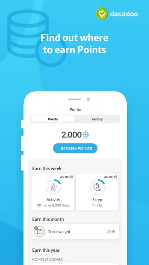 Our platform is only available for eligible users with an access code. If you would like to implement dacadoo for your insurance company or for corporate wellness purposes, please send us an email at sales@dacadoo.com