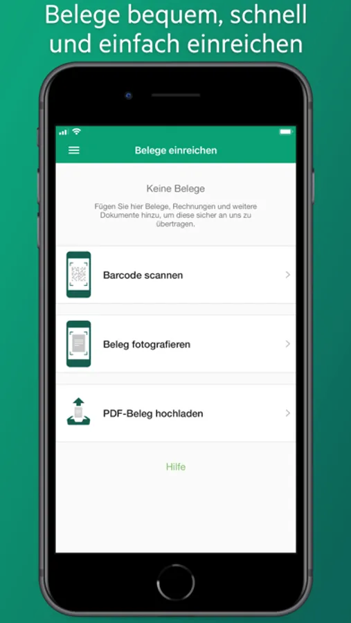 • Einreichung Ihrer Dokumente mit der Fotofunktion, der Barcodefunktion oder der PDF-Uploadfunktion