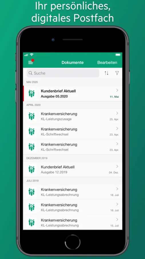 • Digitale Postbox, in die Sie sämtliche Schreiben der Kranken-Leistungsabteilung von uns erhalten
