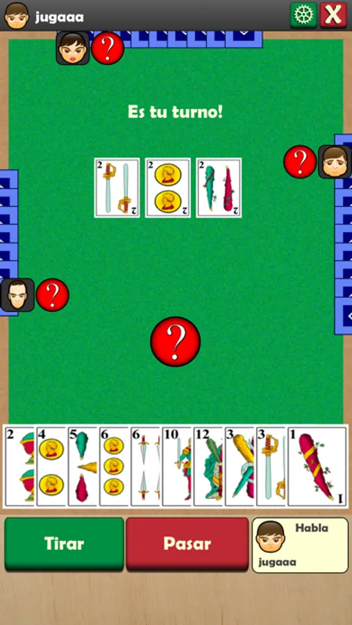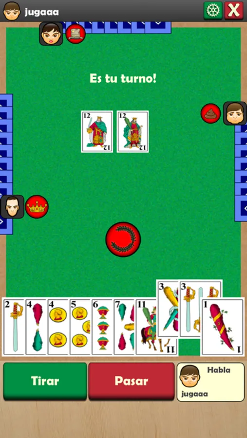 En la primera partida empieza a tirar el jugador que tenga el dos de oros.