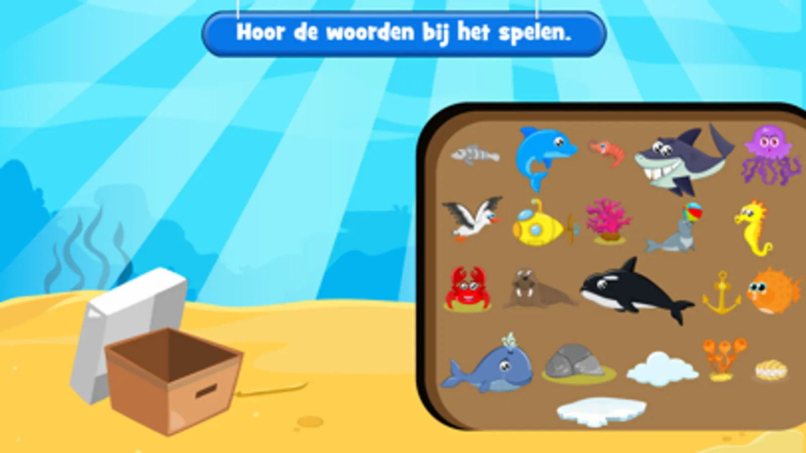 Met deze app leren kinderen veel woorden over het thema zee. Woordenschat is een onderdeel van taal op de basisschool. Hoe meer woorden een kind kent hoe beter een kind is in begrijpend lezen en de rest van de schoolvakken.