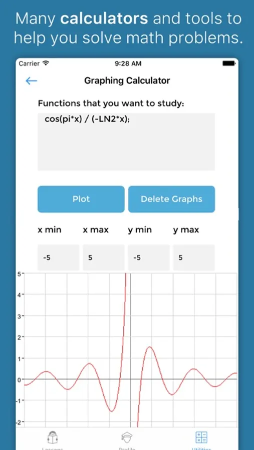 • Get the Advanced Utilities, like the Graphic Calculator, the Systems Solver, the Matrices Solver 3x3 and the Math Glossary.