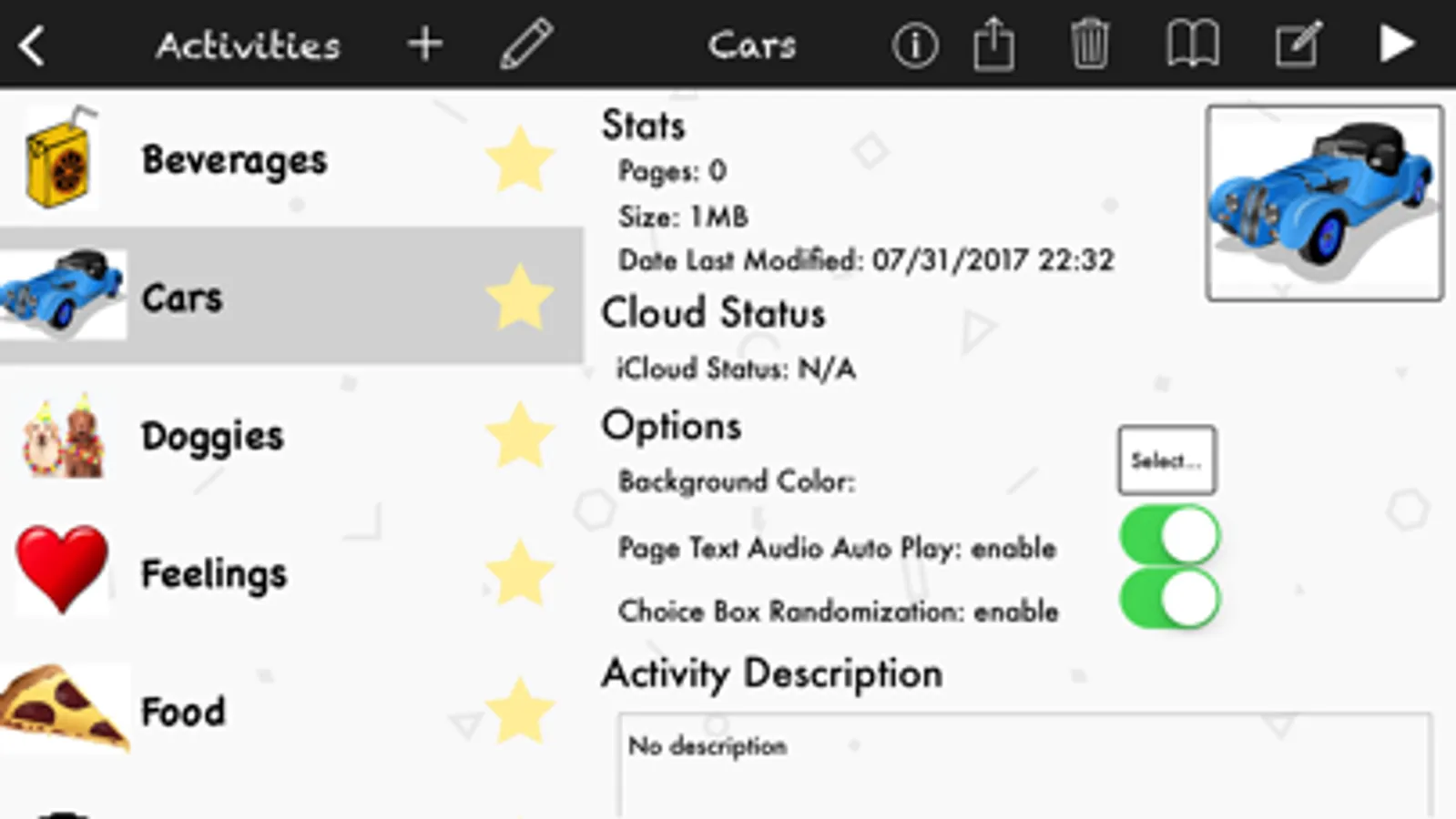 •Other than image files, users can type text into the choice box – use this feature to teach sight words, letter, number recognition