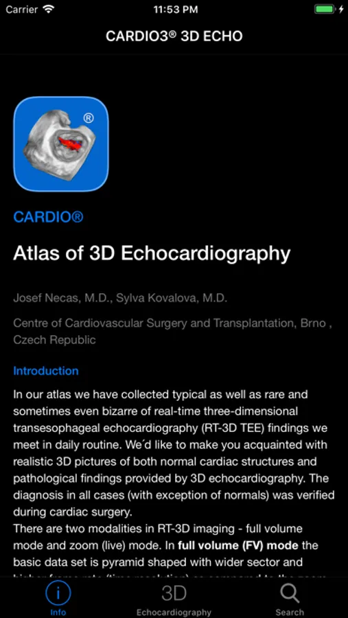 CARDIO3® Atlas of Three-dimensional Echocardiography - reference/learning tool for cardiologists, cardiac surgeons, internists, other physicians, and sonographers evaluating 3D echocardiograms for ultrasound diagnosis.