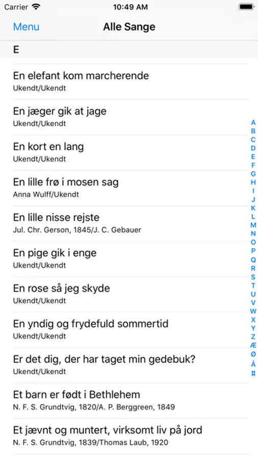 Sange vil blive tilføjet løbende hvis tilladelse fra forfatteren kan gives.