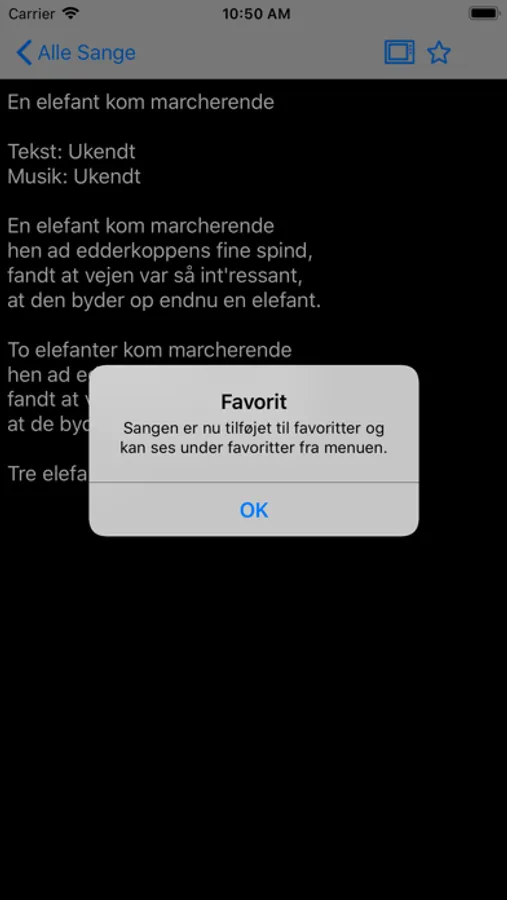 Hvis den sang du søger ikke er der, så har du også muligheden for selv at TILFØJE EN SANGTEKST og se den under Favoritter. Den vil samtidigt blive uploadet til en database og muligvis inkluderet i sangbogen så alle andre kan få glæde af den.