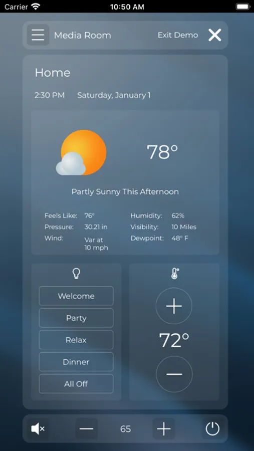 RTiPanel is completely customizable by your RTI integrator to deliver intuitive and personalized mobile control of your lighting, climate, security, entertainment, and more—the same control you get with your dedicated RTI remote or touch panel.