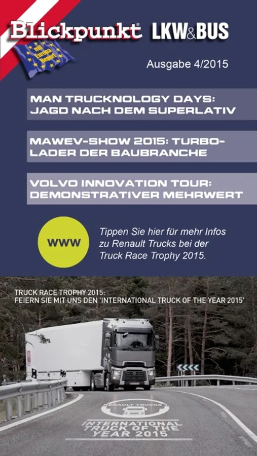 Experience Blickpunkt LKW & Bus digital! The greatest truck magazine in Austria is now available for the entire German-speaking countries by app. Read reviews, see videos, great photo spreads and exciting reports. In addition, daily news from the transport sector can be fed automatically. A particularly practical feature is the gas station finder that displays you the nearest petrol stations onto the display. A must have for trucker, logistics experts and truck-fans!