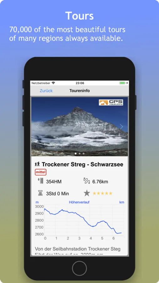 More than 70,000 tours (biking, hiking, skiing) from our partners gps tour.info, alpintouren.at and geo-coaching.net with reviews / height model / text / images COMPASS TOP50 maps and cards. The map coverage of the tour services currently affects South Tyrol, Austria and Germany and is constantly expanding.