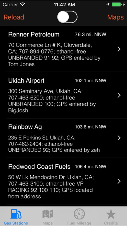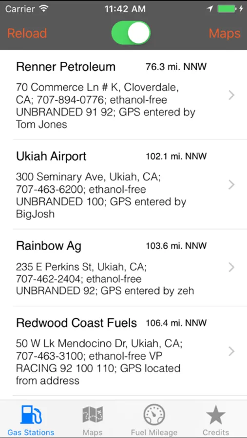 Pure Gas is a simple front end app for the popular website pure-gas.org. You get a list of 100 ethanol-free gas stations sorted nearest to furthest. Just click on the one you like, and get driving directions!