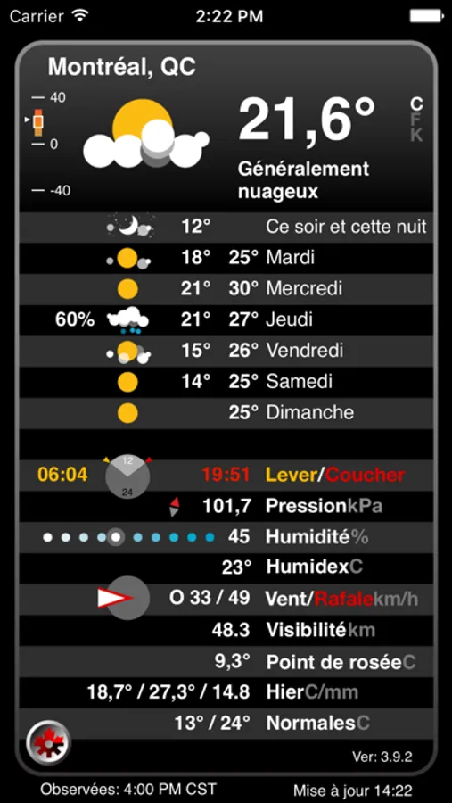 Canada's weather: essential Canadian weather information taken from the best and most accurate source—Environment Canada—and presented in an appealing and rich format. Enhanced version of our popular free app, now with radar! Includes your most requested features: