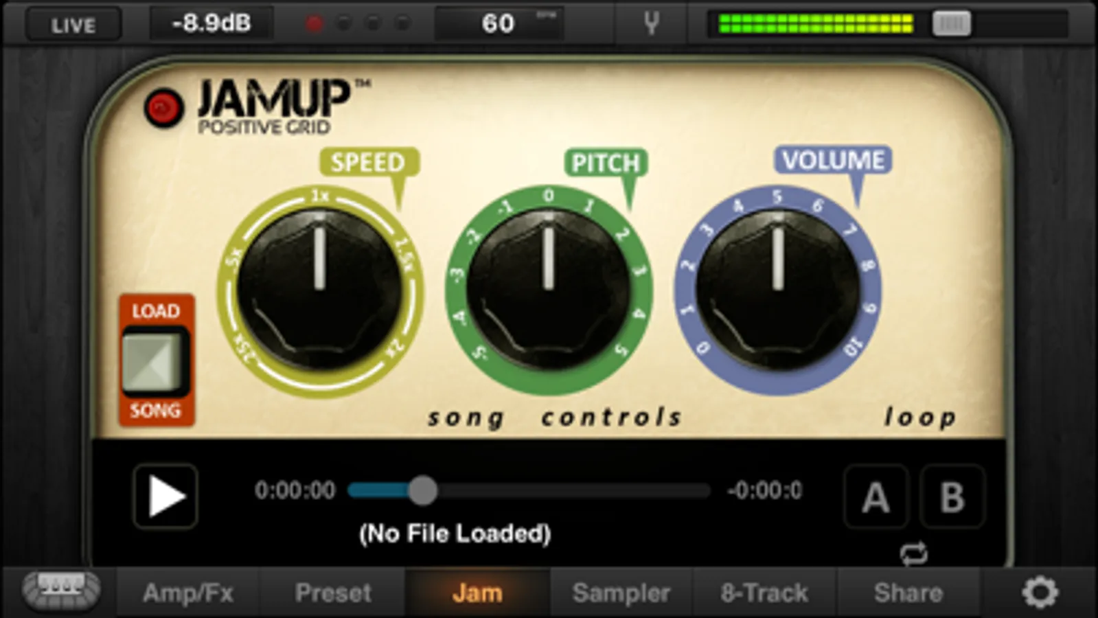 Import songs from your iTunes library to jam along with using the Jam Player module. Adjust the tempo and pitch with the high-fidelity time-stretching engine. Easily record and layer looped parts with the sound-on-sound phrase sampler. With the built-in tuner and metronome, and optional 8-track recorder, JamUp delivers a complete, professional processing and recording solution.