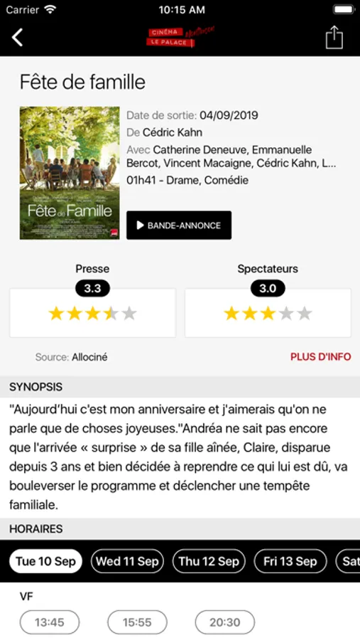 Retrouvez à chaque instant toute l’info de votre cinéma Le Palace à Montluçon sur votre iPhone ! Les films à l’affiche, les horaires des séances, les fiches films et les événements et infos pratiques de votre cinéma !