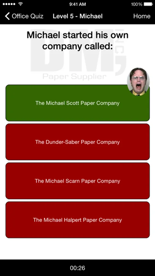 Do you think you know your way around the office? Test your knowledge with this Trivia Game about the characters in the TV Series The Office. Take it once, or take it over and over again. Move your way up the corporate ladder, until you reach the high position of regional manager. Replay the game, and stay amused with different questions.