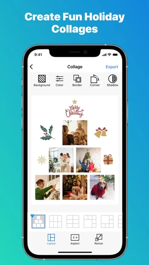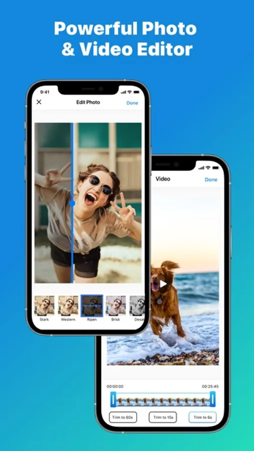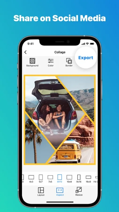 – 15 different photo aspect ratios optimized for sharing (i.e. 9x16 format for social stories)