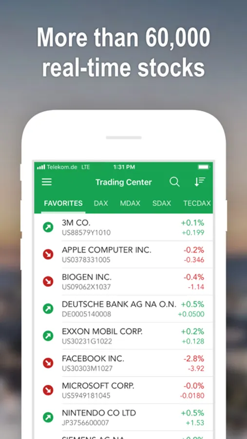 TRADING CENTER: Here you can inform yourself about shares or place your buy orders. All of the known indices are directly accessible. Add price alerts for your favorite stocks to always stay up-to-date.