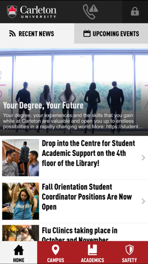 Carleton Mobile is the official app for current Carleton University students. Use this mobile application to access your class schedule, check your grades, navigate campus, get the latest news and events, and see if there’s a Ravens game tonight.