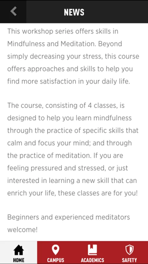 • Campus Map — get from building to building and around the tunnels with GPS enabled map features