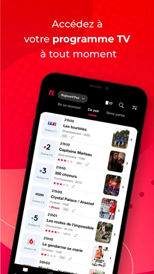 - Un Guide TV avec plus de 300 chaînes (TF1, M6, Arte, C8, W9, NRJ 12) des différents bouquets (TNT, Orange, Free, Bouygues, SFR, Canal …)