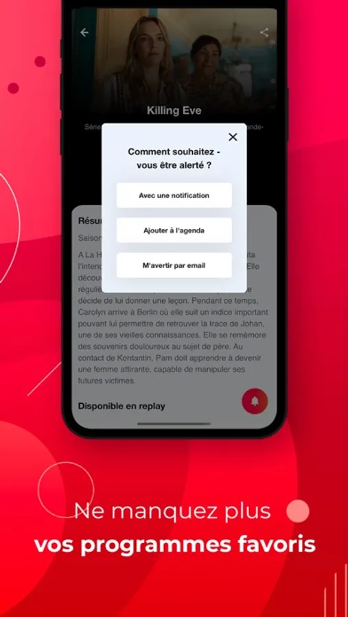 - Ne ratez plus aucun de vos programmes en configurant vos alertes Télé-Loisirs et choisissez parmi deux options : Recevez une alerte entre 2 et 60 minutes avant la diffusion de votre programme Ajouter le programme à votre agenda personnel.