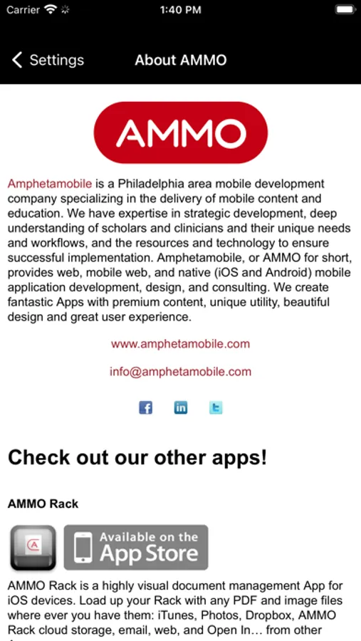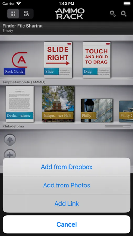 AMMO Rack is a highly visual multi-media and document management App for iOS devices. Load up your Rack with any PDF, image files (png, jpg, bmp, gif), or weblink where ever you have them: Photos, Dropbox, email, web, iCloud. Use Open In… or sharing extension from other Apps to Export to AMMO Rack.
