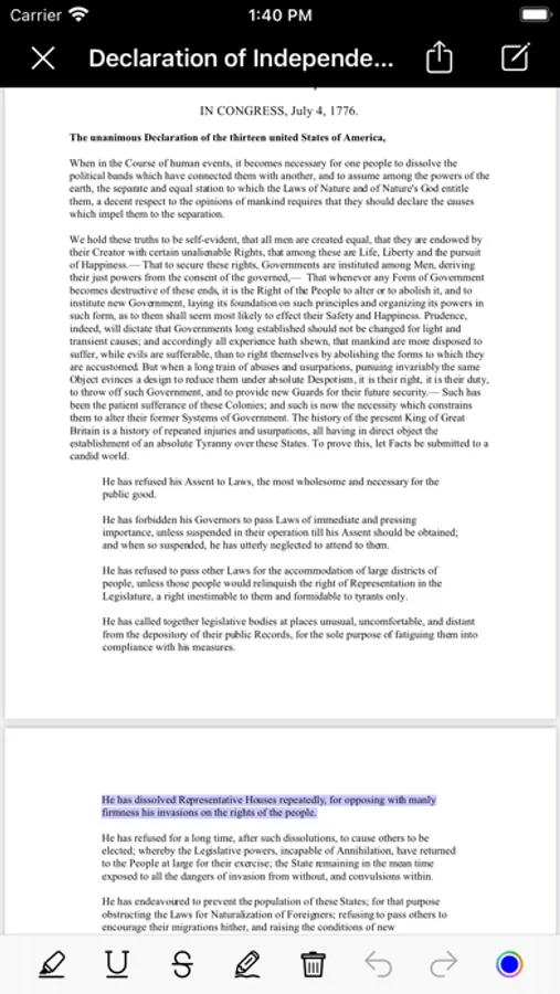 • Initial App is free with ability to add up to 50 documents, upgrade thru in app subscription to add unlimited documents and unlock PDF text annotations tools and support the app!