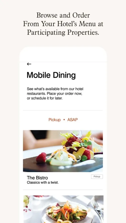 Order ahead while you’re out exploring. Browse and order food and drinks from your hotel’s menu at participating properties, and it will be ready when you return.