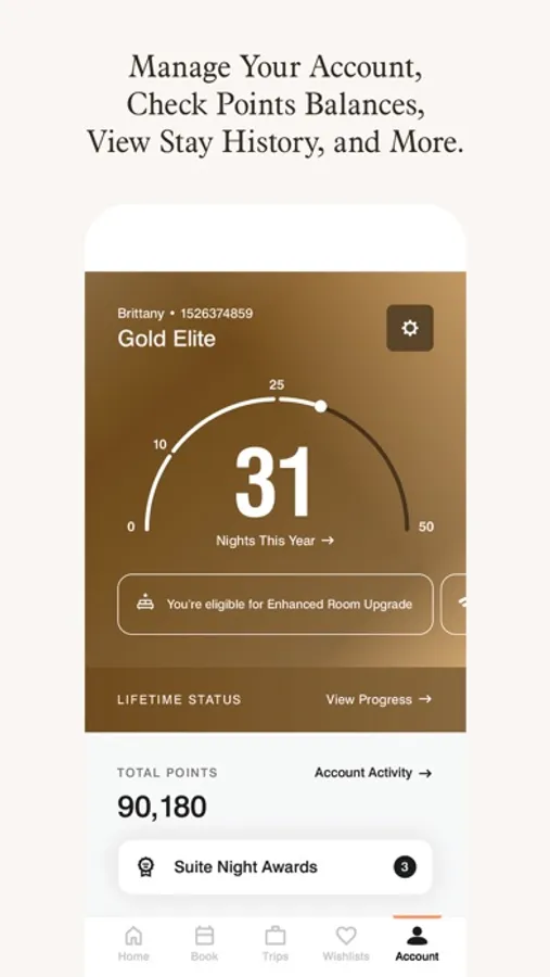 Check your point balance, view your stay history, folio, and more.