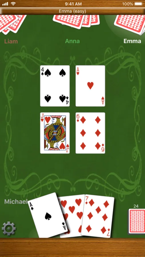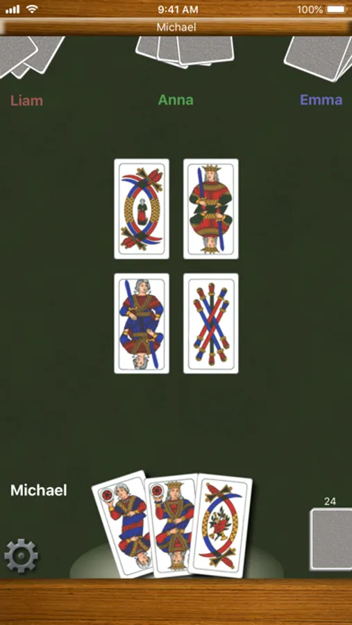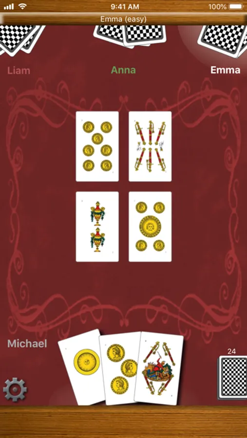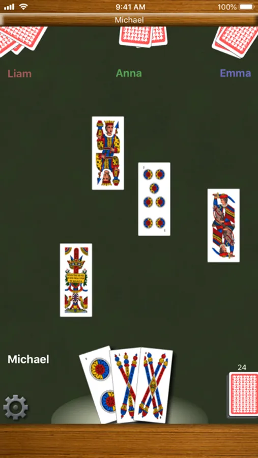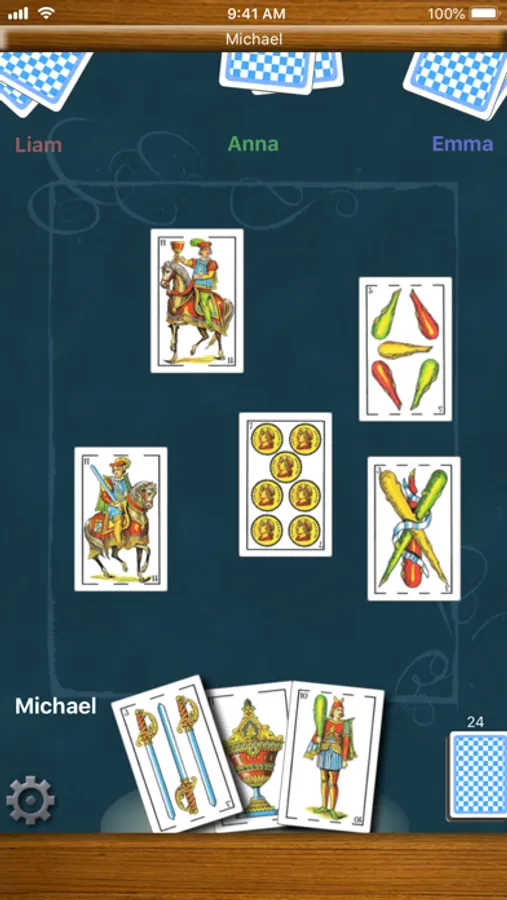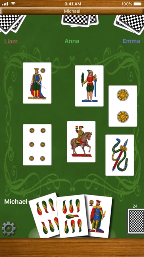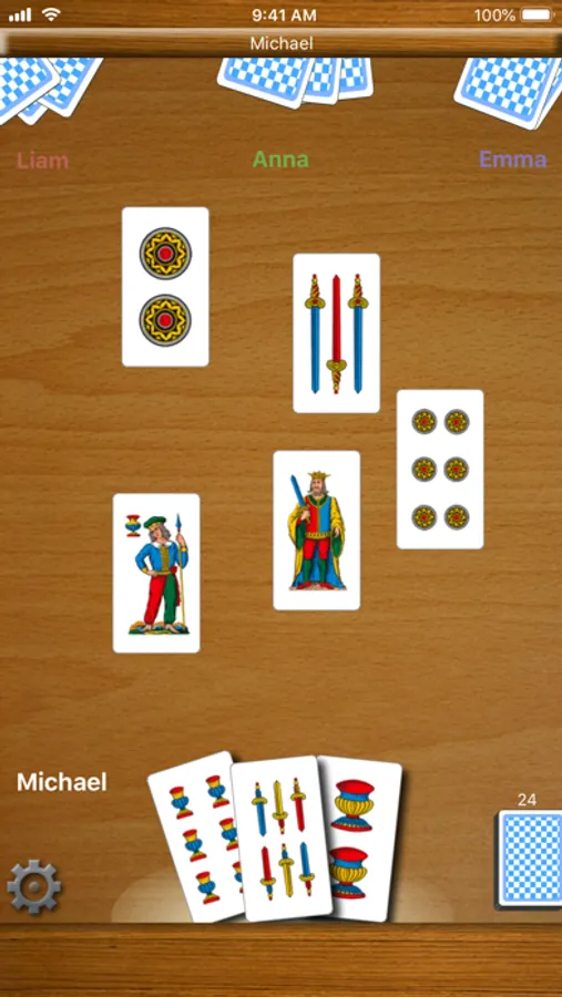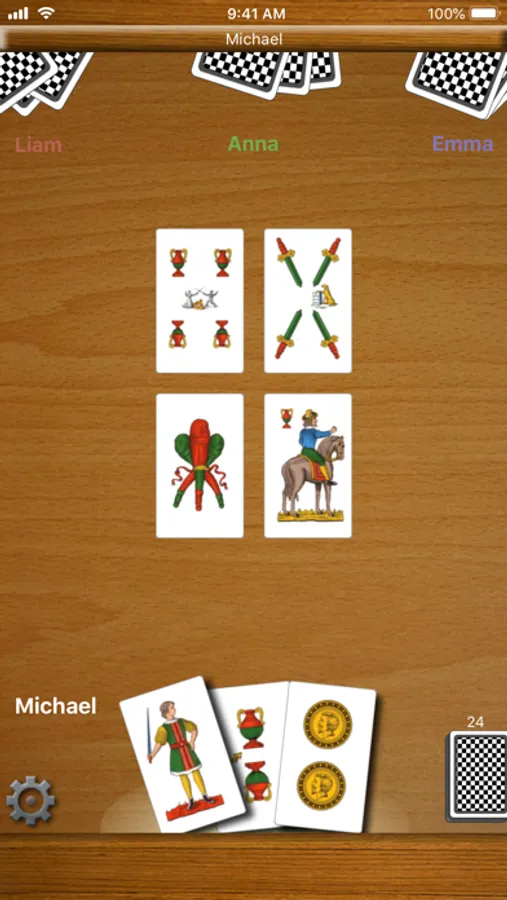 The traditional Italian “Scopa” card game. You can play against one, two or three opponents controlled by your device, with three different ability levels. Includes several Italian regional cards, and the French and Spanish ones.