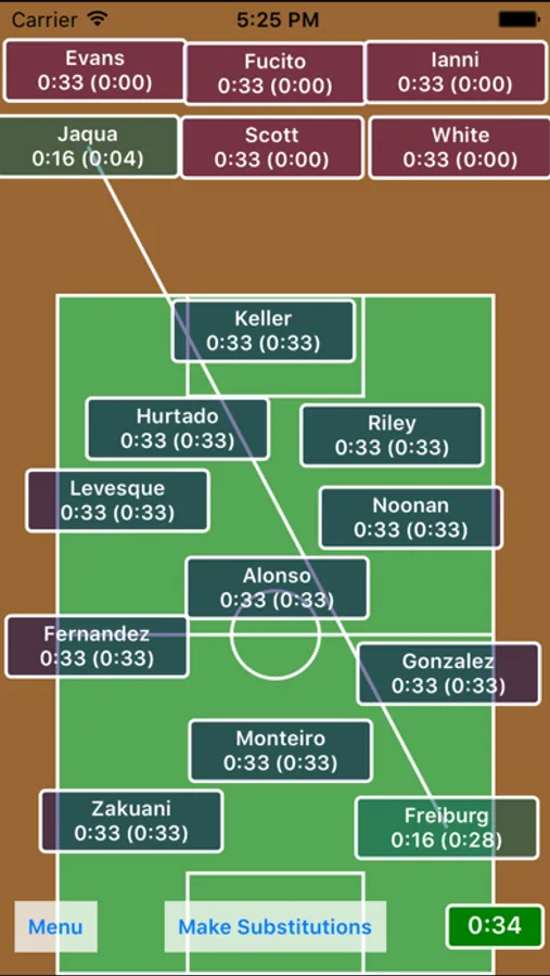 Designed with input from a youth soccer coach who manages multiple teams each season, Coach's Clock is a very simple application that runs on your iPhone, iPad or iPod touch. It keeps track of all of the players on your team, where they are supposed to be on the field, and how long they've been playing since they were last substituted into the game.