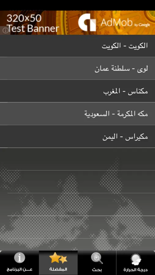 ٣. المفضلة و تحتوى على المدن التى قمت باختيارها من صفحة البحث .