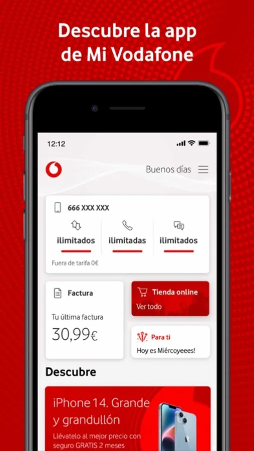 - ¿Conoces Vodafone Energía? ¡No pagues de más en tu factura de la luz! Usa nuestra calculadora energética y estima tu ahorro mensual en tan solo unos clicks además, descubre todos los servicios que Vodafone tiene para ti (seguridad, salud, banca…) en la sección “Servicios” de nuestra Tienda Online.
