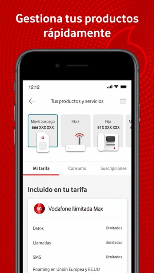 - Revisa cuando quieras todos tus productos y servicios contratados (líneas móviles, teléfono fijo, fibra, TV) desde “Mis Productos”.