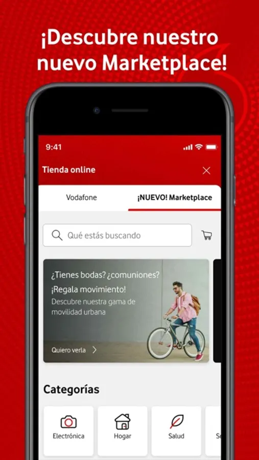 - Nuestro Marketplace, dentro de la Tienda Online, es un espacio donde encontrarás miles de productos de diferentes vendedores, organizados en diferentes categorías (Hogar, Deportes y ocio, Juguetes...) y pensados para ti, ¡¡por ser cliente Vodafone!!