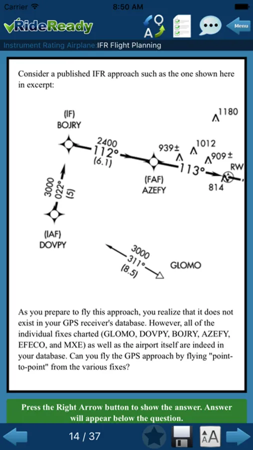 * This is NOT FAA written (knowledge) test preparation. If you want FAA written (knowledge) test preparation, check out our GroundSchool FAA line of products. Many pilots buy both RideReady and our GroundSchool-FAA apps as they work well together.