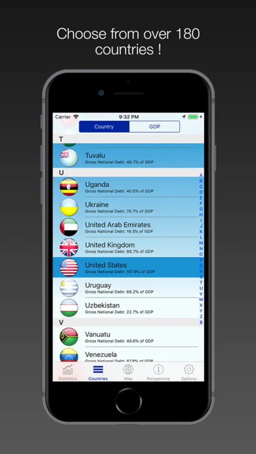"National Debt" provides insight into the national debts of more than 180 countries! It shows the development of the national debt in real-time, and provides an overview of the year-to-year historical development of the debt. The app has the option to display the debt as percentage of the gross national product, and show this result on a comprehensive World Debt Map!