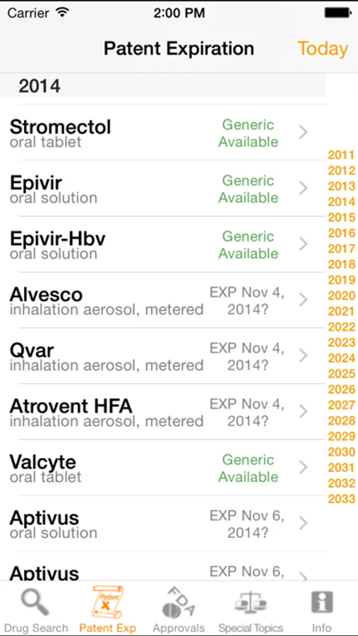 One question that frequently gets asked by both patients and health care practitioners is ‘When will a generic come out for this drug’? RxOrange can predict an expiration date based on patent and exclusivity information from the Orange Book.* It also shows brand name products that have recently gone generic, so you can stay up to date as new generics become available.