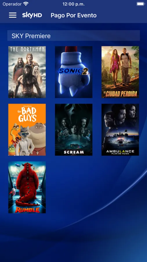 La sección de SKY Premiere te da rápido acceso a las descripciones y horarios de las películas disponibles en pago por evento que SKY trae para ti.