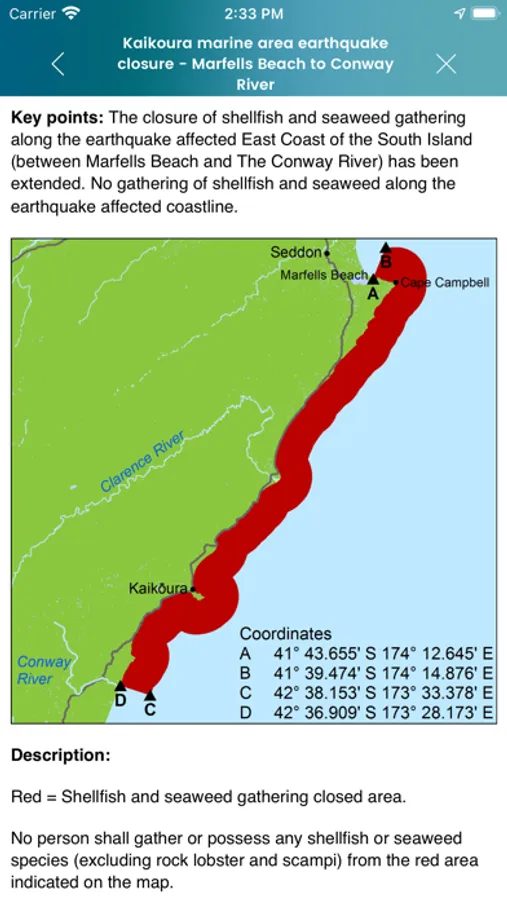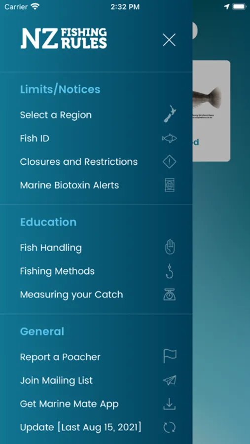 The application helps you to identify recreational fish species common in your area through images, then displays relevant information such as the minimum legal size, maximum daily limits and area bag limits. Short videos embedded within the application show how to release undersize fish correctly and also how to measure/determine the sex of crayfish. Local notices will give you updates on any temporary closures in the area.
