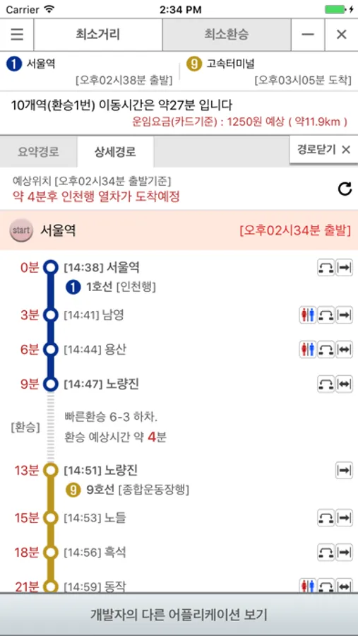 1. 수도권 급행계산은 출발시간을 기준으로 도착시간이 급행이 빠르다면 급행으로, 일반열차가 빠르다면 일반열차로 보여주도록 기능을 변경하였습니다.