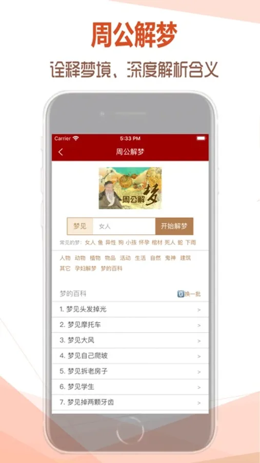 诠释了周公解梦的种种梦境, 给予以深度的解梦分析, 破解梦的深层含义