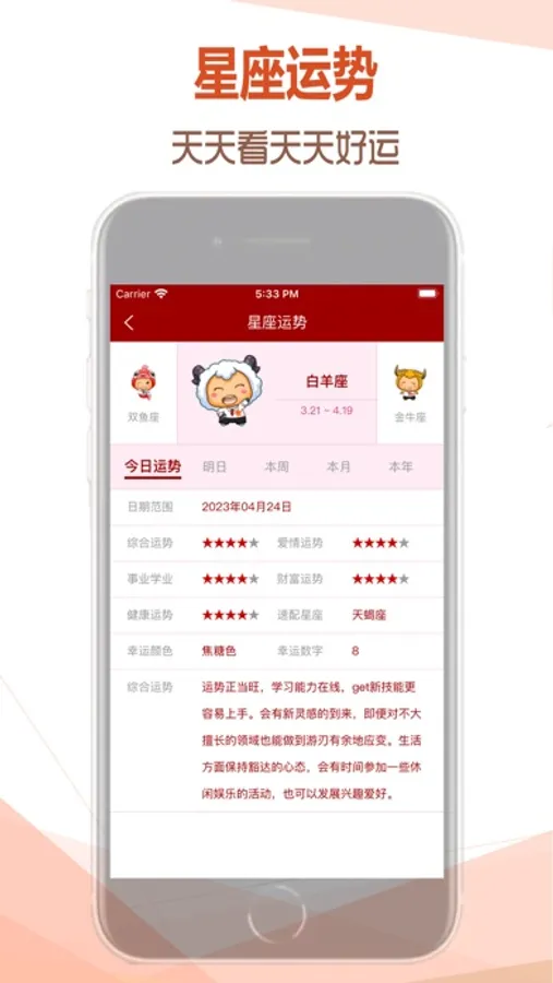 超准今日、本週、每月、星座流年运势,包含整体、爱情、事业、财富运势指数、运程预测及开运祕法,天天看天天好运。