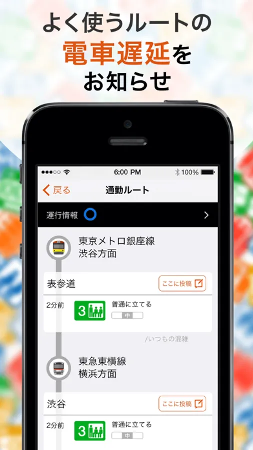 全国の電車の混雑状況、遅延・運休などの運行情報を、みんなで投稿して共有できるアプリです。機能はすべて無料でお使いいただけます。