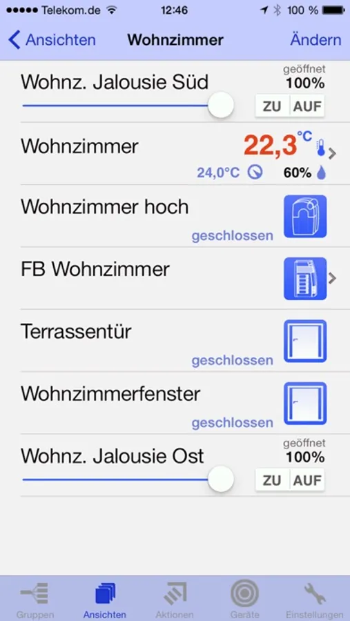 Lighting, heating and other devices can be controlled directly or through defined actions.