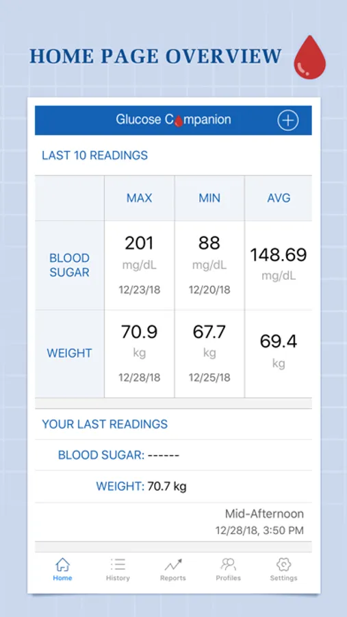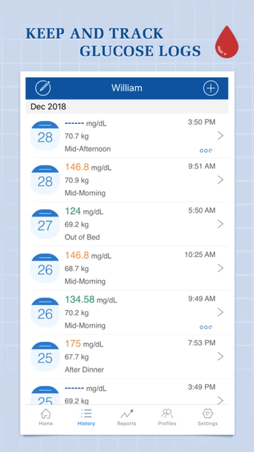 ⁃ Supports multi-users, track the blood sugar of yours and your family’s.