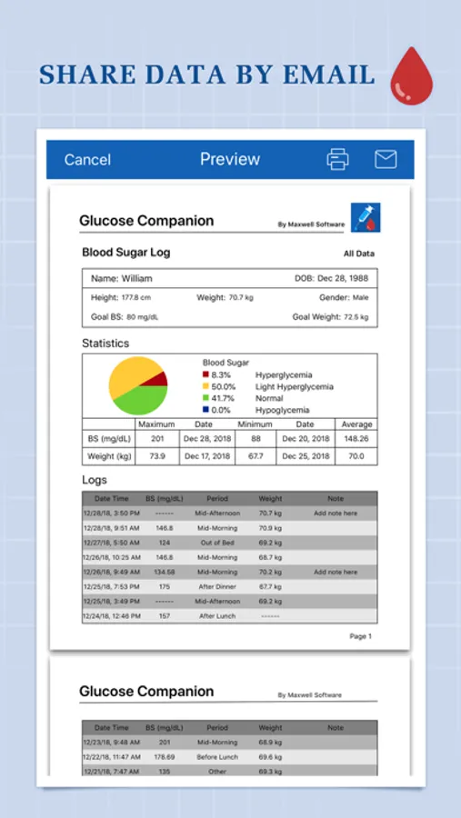 Use Glucose Companion now to monitor your blood sugar and share your measurements with your doctor, it will help greatly to your physician to diagnose and treat your diabetes.